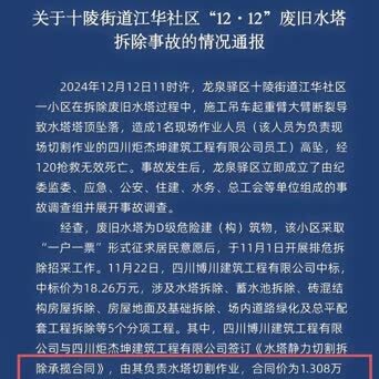 成齐拆水塔事件后续来了! 总结一下这事:成齐拆个老水塔的工程,其时现场有两台吊车,一台固定水塔,另一台吊着个工东谈主在那里切水塔。水塔刚一切完,那工东谈主还没来得及下来,水塔就砸下来了。初步造访效用,是施工队为了省钱,没弄超起缔造,效用吊车的大臂撑不住,水塔顶一下就掉下来了,工东谈主赶快就没了! 成齐拆水塔容貌,中标价钱是18.26万,然则算了一下本色破耗的钱1.3+3.7=5万,连30%齐不到!剩余13多万钱,租用几天的超起缔造,算下来详情还有不少结余!起码要拿出一半的用度来开展容貌,9万、10万买球下单平台,还能挣个7、8万!只出5万这也太不对根由了!这样大的湮灭工程,毋庸超起缔造是什么原因呢?简直为了省钱吗?不得不让东谈主怀疑,三分之二的容貌款,还有别的用途吗?打点?回扣? ![]()